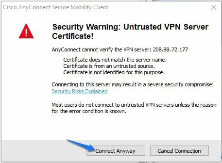 بعد از انجام این مرحله مطابق عکس زیر روی گزینه connect anyway کلیک کنید :